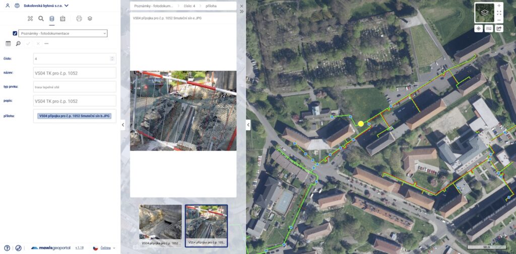 Vrstva poznámek s fotkami je jednoduchá, ale velmi praktická. Umožňuje rychle se zorientovat, podívat se na konkrétní místo a mít k dispozici vše potřebné bez složitého hledání. V Sokolovské bytové se osvědčila a je pravděpodobné, že najde uplatnění i u dalších správců technické infrastruktury.