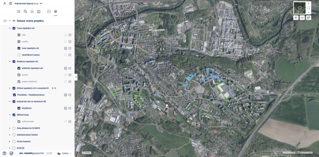 Při správě technických sítí využívá Sokolovská bytová mapovou aplikaci MawisGeoportal. Obsahuje mapové vrstvy popisující jejich rozvody tepla, výměníkové stanice, místa křížení s jinými sítěmi a další obvyklé výkresy technických sítí.